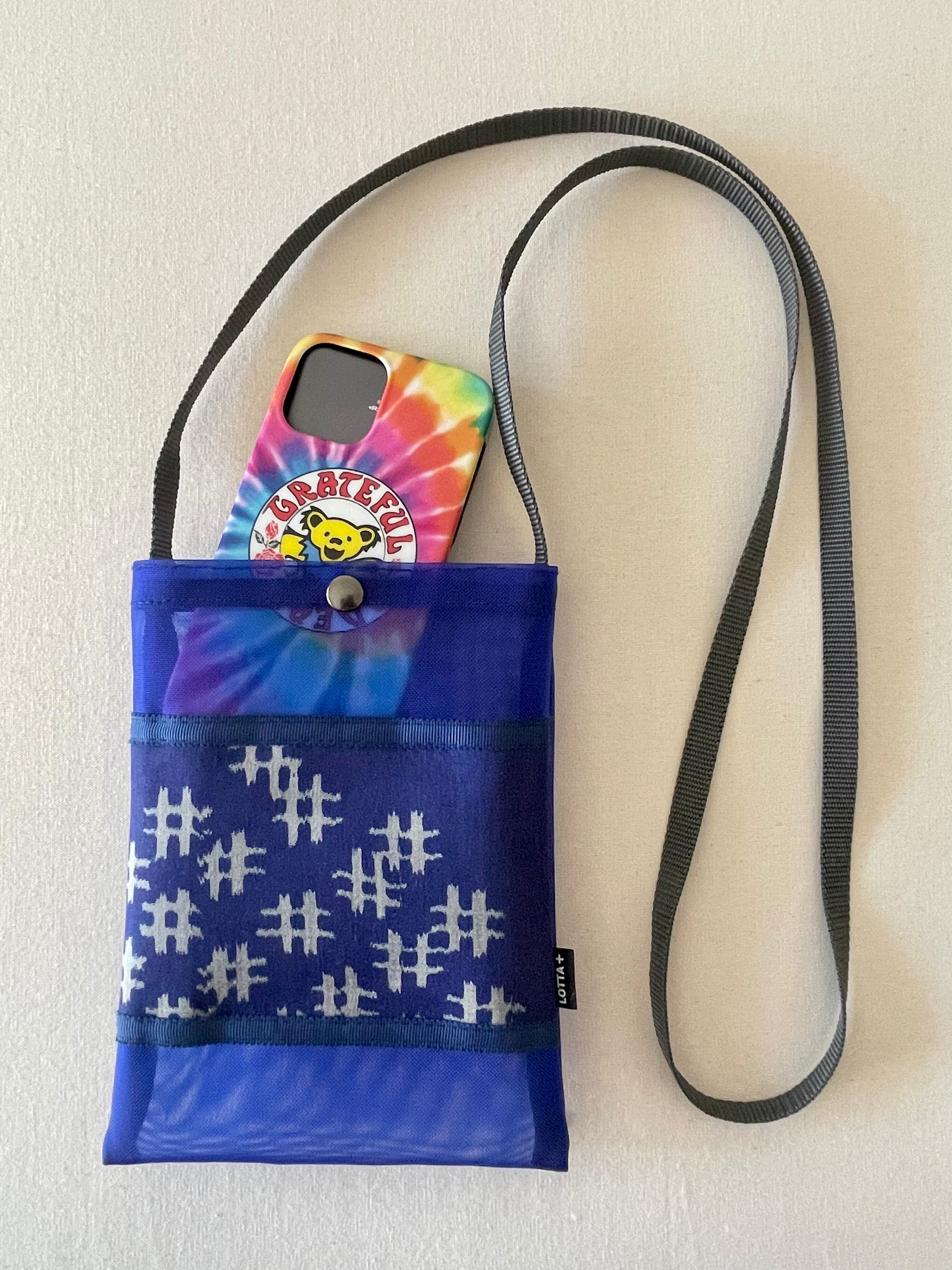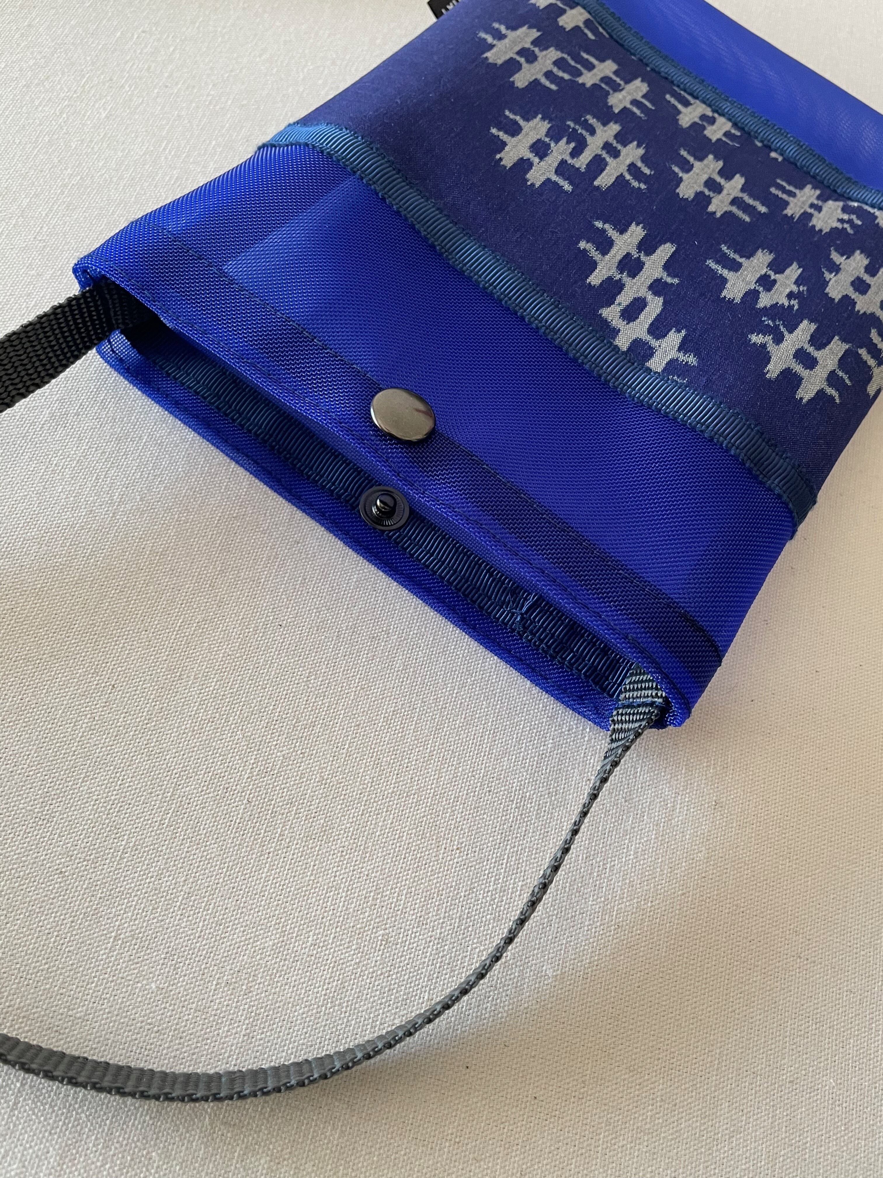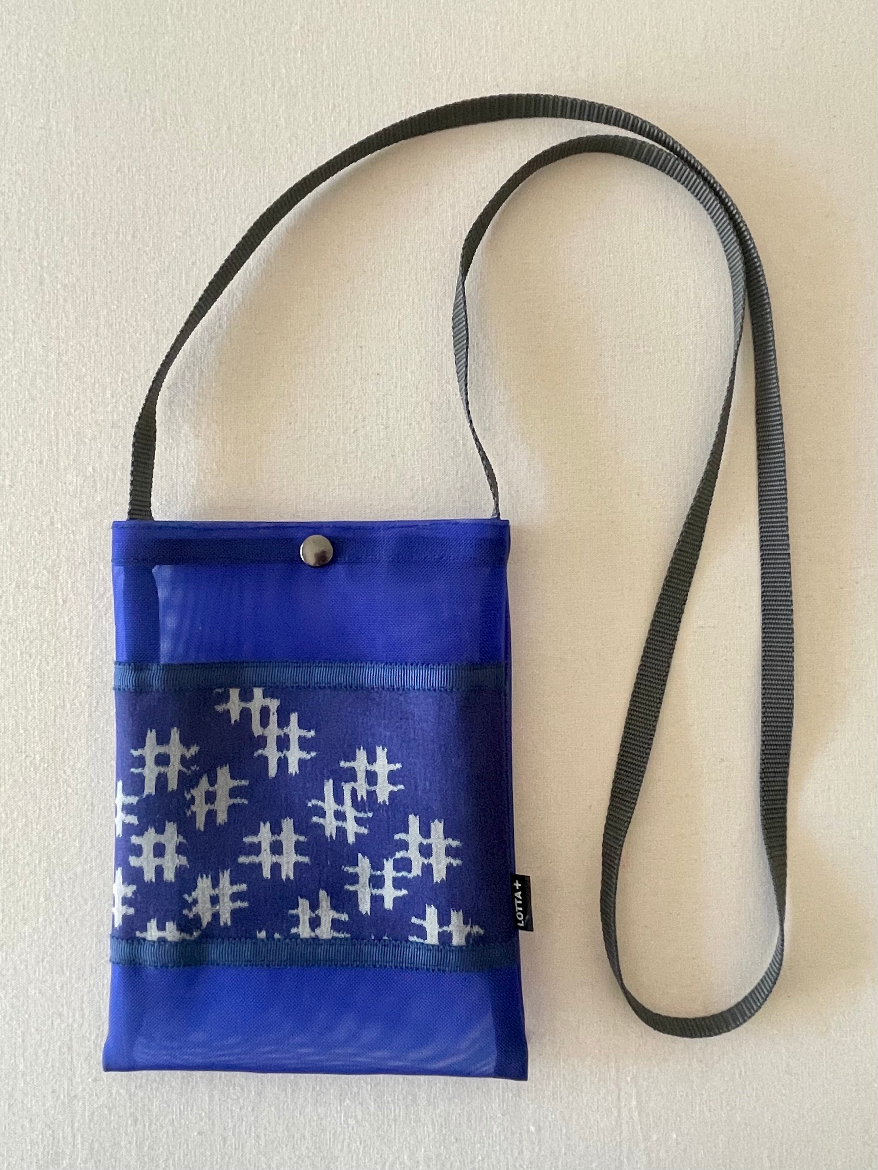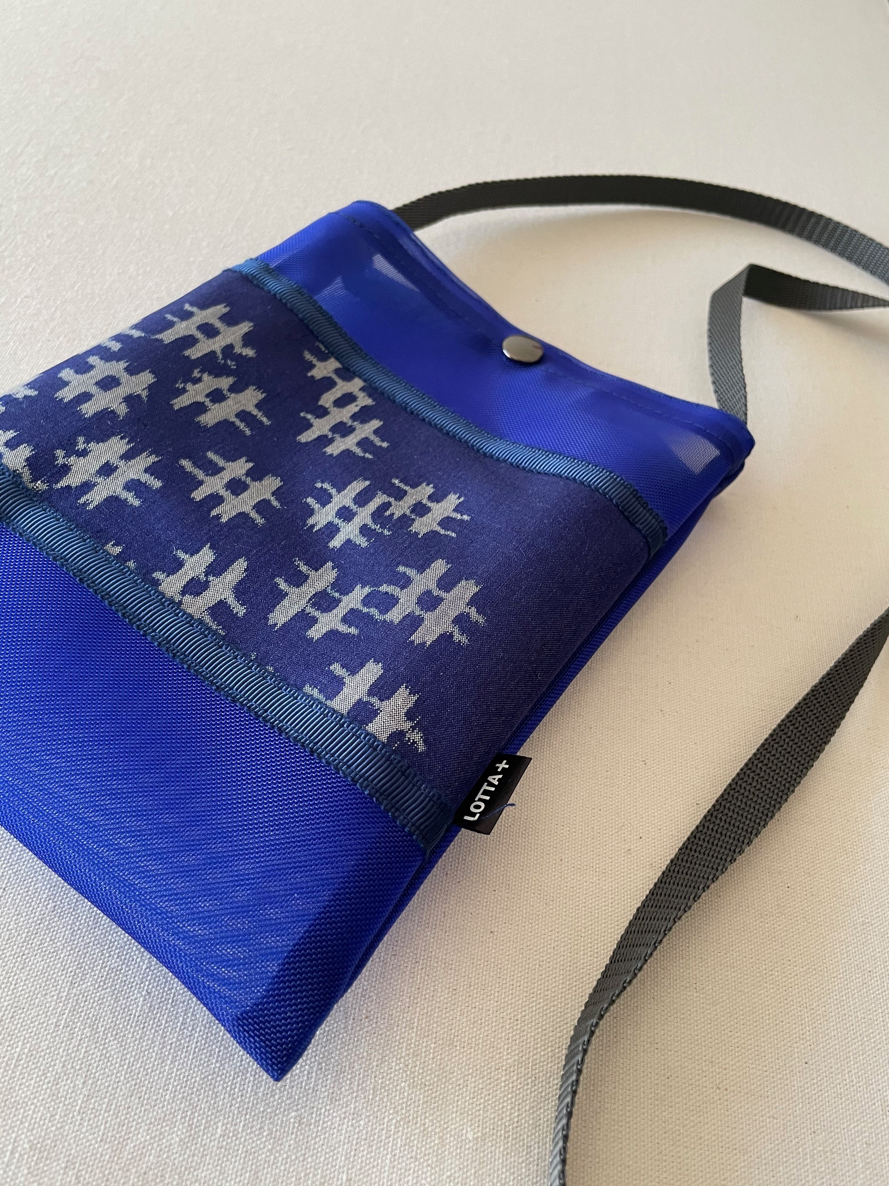 銘仙メッシュポシェット・青・井桁