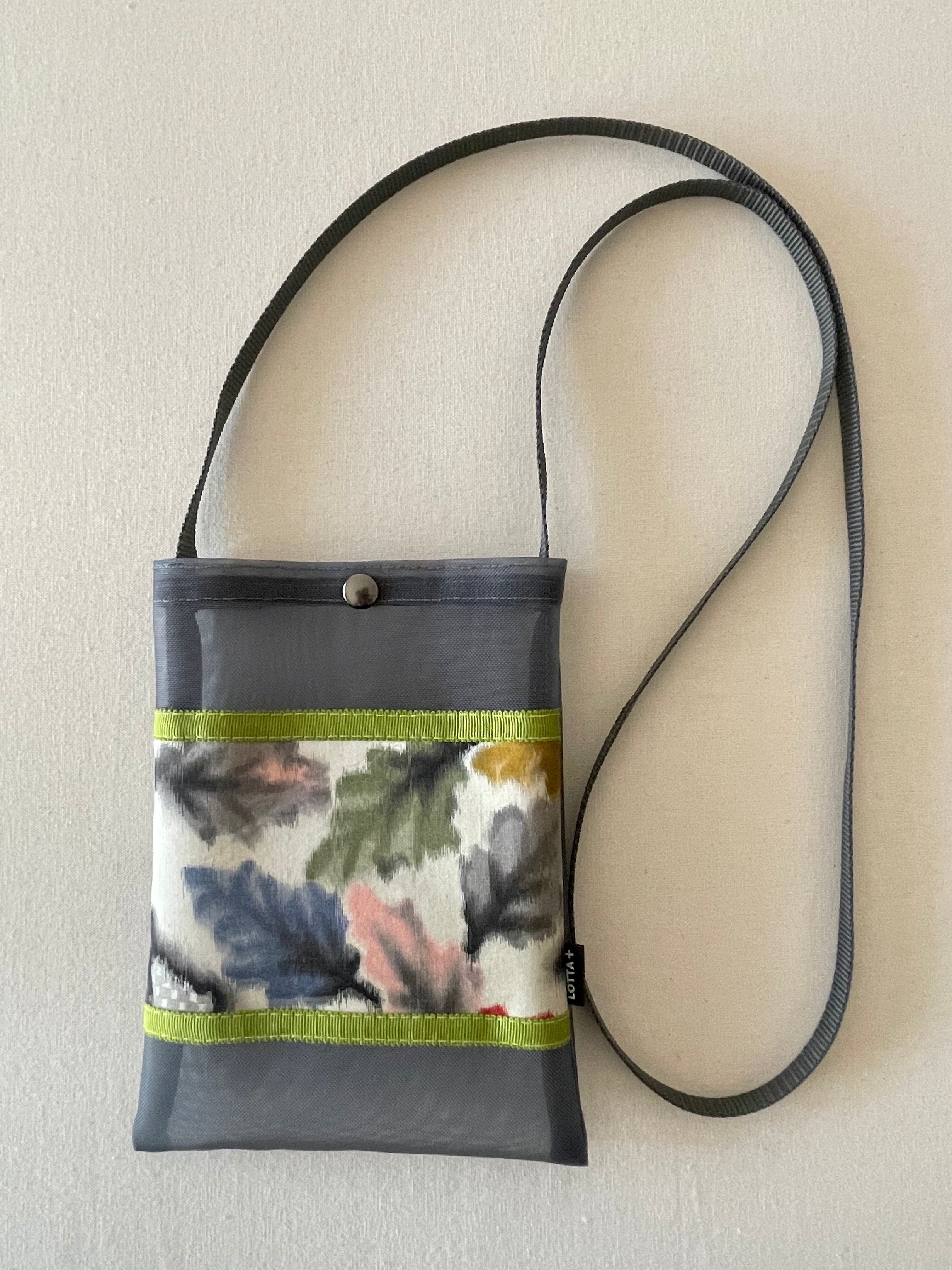 銘仙着物とメッシュを組み合わせたフラットなポシェットです。